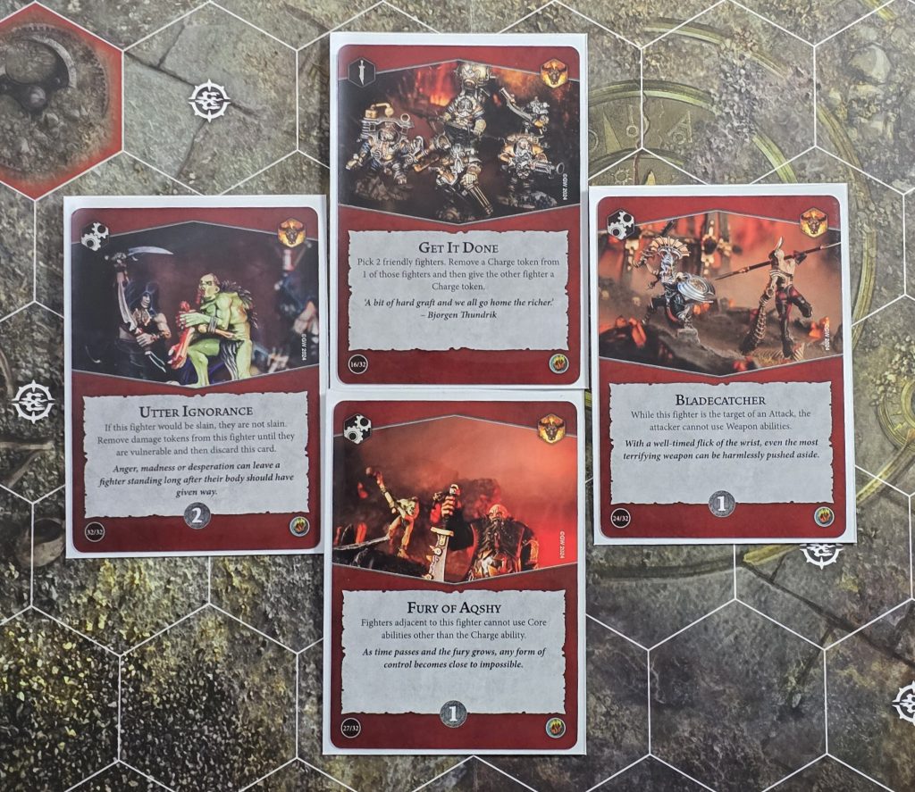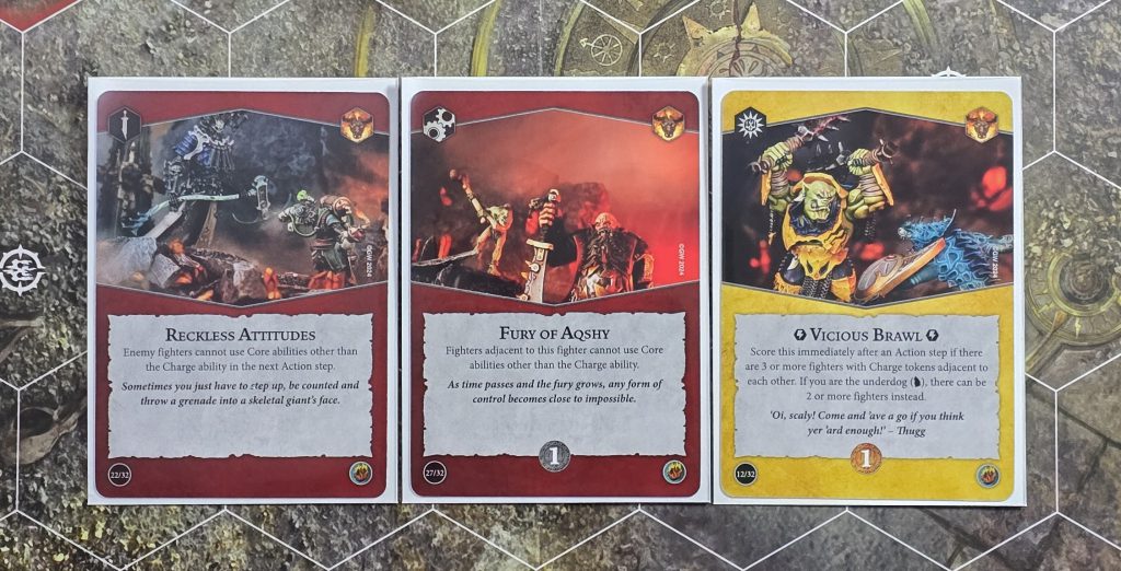 Get It Done is one of the three ploys currently in the game that allow you to work around a charge token. Unlike Scream of Anger from Blazing Assault which deals significant damage to the fighter in return for removing a charge token, or Push Through in this same deck that deals less damage but has a restriction on not being able to affect high bounty fighters, Get It Done is just an easy “charge again” button to slap with next to no downsides. It has an outsized impact on any of the big brawler warbands (Headsmen’s Curse, Mollog’s Mob, etc.) but it’s rough even in elite fighter warbands like Morgok’s Krushas or, oh, Gorechosen of Dromm.