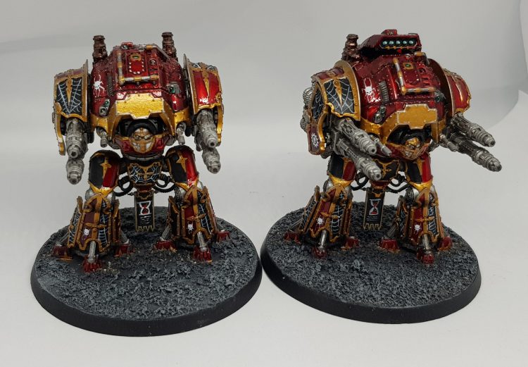 Knights play very differently from Titans, and those differences are only magnified in a Household Force. Titans are much more durable and don't suffer from diminishing returns in the same way that Knights do. Even the relatively fragile Warhound Titan requires significant focus to take off the table, and any critical hits or damage to weapons that might decrease its combat effectiveness aren't permanent, since its servitor clades can repair that damage if given enough time. By contrast, even a Banner of Acastus, the most durable Knight in the game, can suddenly vanish from the battlefield with decent luck from a belicosa.
