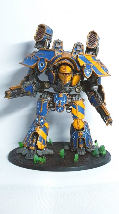 Avoid pushing for speed with the Warhounds. In addition to making them so fast they’ll leave your Warlords in the dust, they’ve got a 25% chance of orange-lining and about a 30% chance of risking an awakened machine spirit every time you push, making the boost a bit risky for their shorter reactor track. Instead, let them march up the board with the Warlords, adding a few ablative shield points into critical void save rolls or distracting your opponent from the Warlords that form the core of your army and will do most of the heavy lifting.