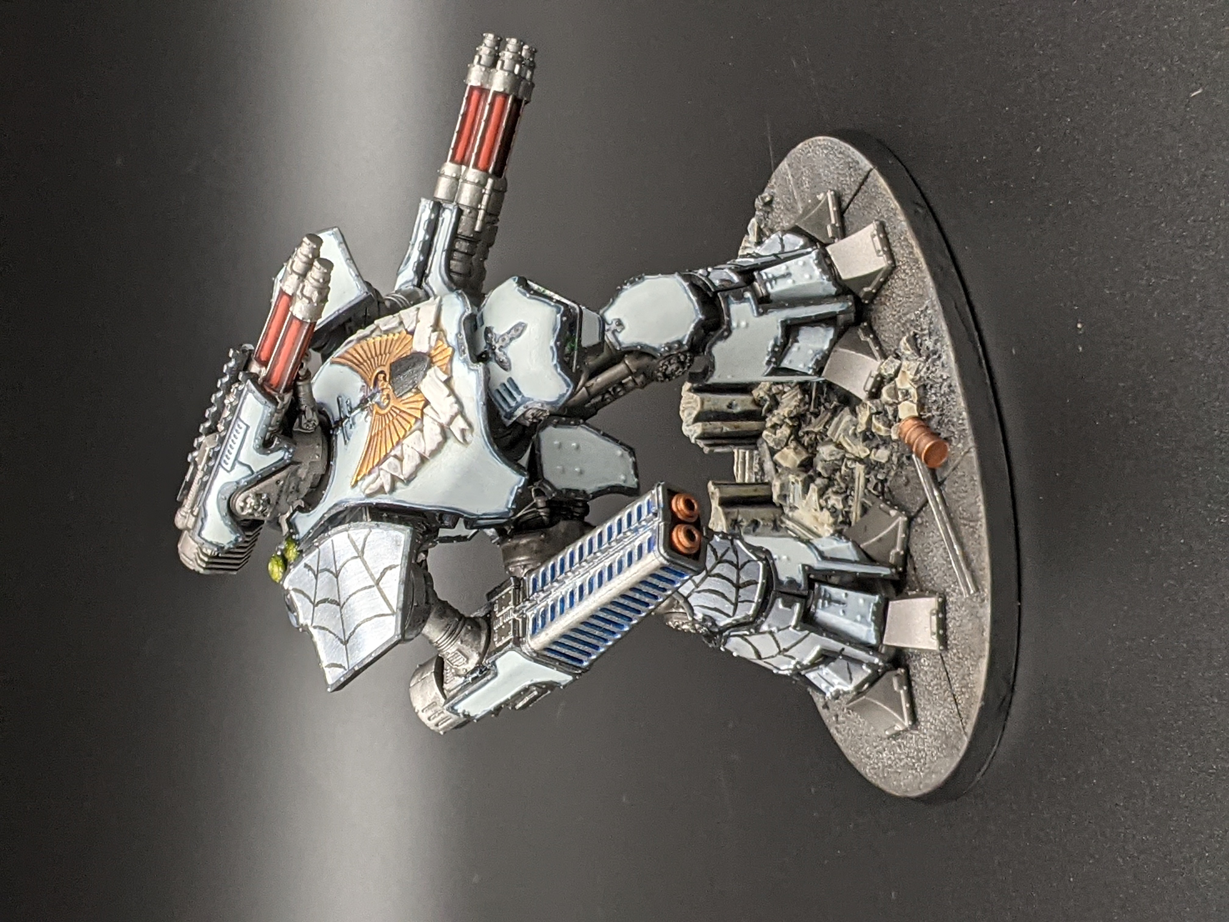 During the Age of Strife the God-Engines of the Forge World Arachnus protected their people from the native mega-arachnids and invaders from outside the system. When discovered by the Great Crusade, Arachnus insisted that they remain sovereign which saw the start of a bloody compliance action which would see Arachnus losing the majority of it’s small empire and the depletion of the Legio Venator “Iron Spiders” Titans.