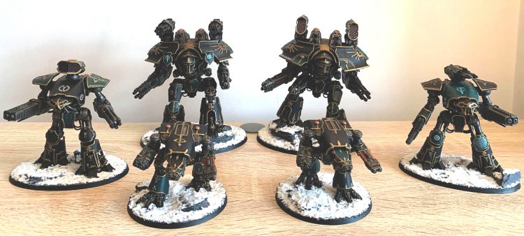 weird, but it’s what Bair has been running with some success because of how hard to crack it is until the enemies get close. The Warlords are paired together with Twinned Machine Spirits, and the Warhounds are in one big squadron, leaving you with a whopping 2 activations in total. The Warlords are also making use of the