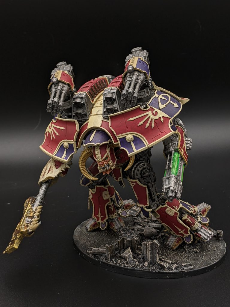 Finally, there’s one serious downside that Corrupted Titans have to deal with that comes from the Loyalist Legios supplement: weapons with the Psi trait add 2 to armour rolls against Corrupted Titans. In other words, a Psi-Titan’s Sinistramanus Tenebrae is all but guaranteed to cripple or outright kill anything smaller than a Warbringer-Nemesis in a single shot, and will dish out heavy damage to even the largest Titans. You’ll need to be prepared to deal with that if you find yourself setting up across the table from one.