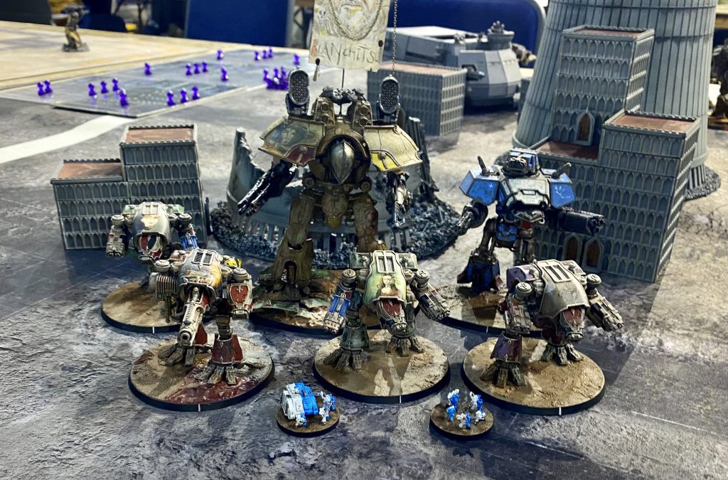 All of the Optional Rules in the rulebook were not in use so no destructible terrain, no power transfer, no stray shots and no overloading void shields. I’m in agreement with not allowing overloading voids, it’s something that can end up being completely insane on an almost-dead titan and I don’t think many people have ever even used stray shots. I understand for ease of an event to just not use destructible terrain too, it can slow things down but does give a big advantage to forces with more knights/Warhounds too.