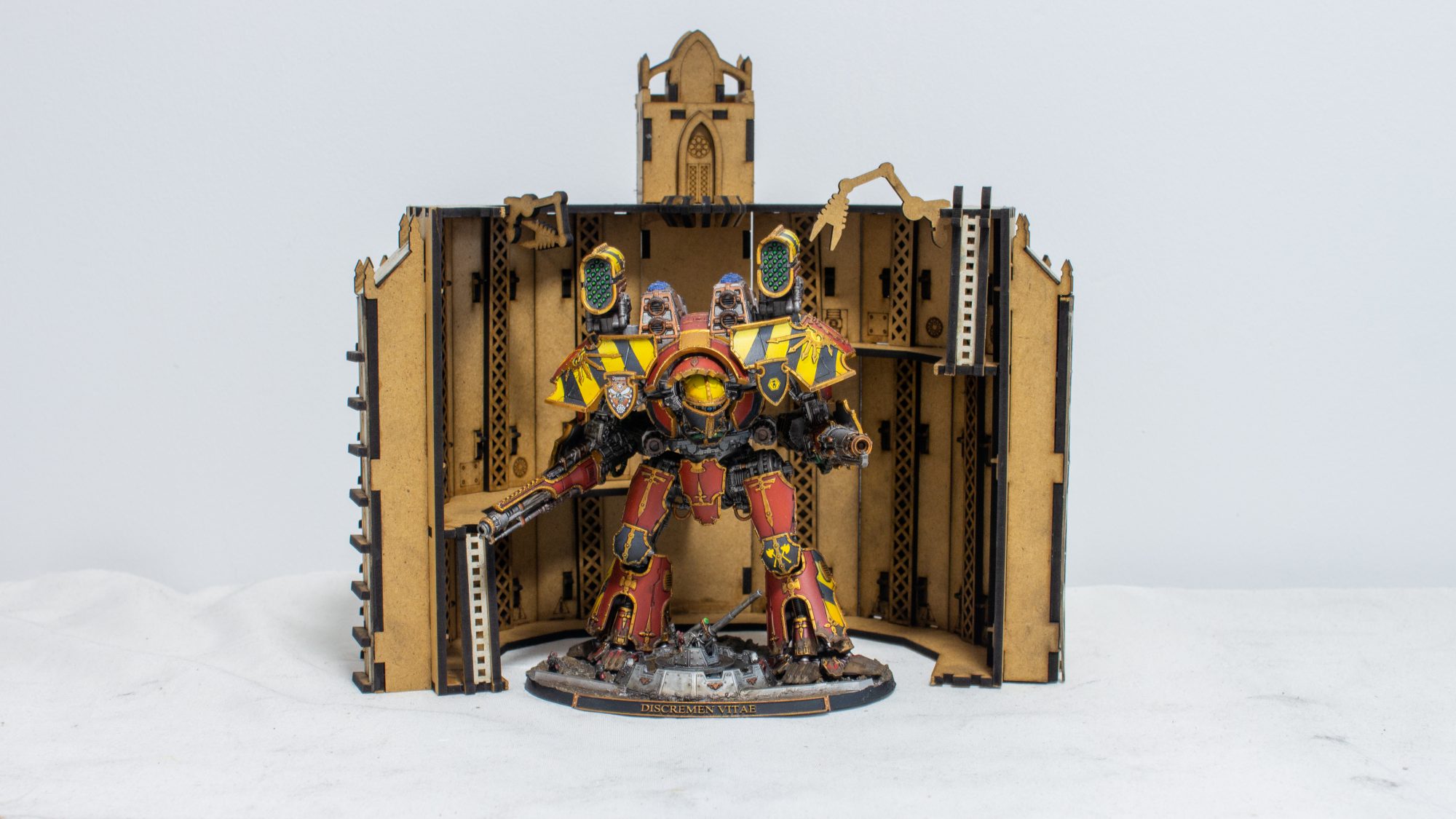 One of the chonkiest bits of terrain is the Shrine Mechanica, a forge for refitting your engines in. This is a fantastic LOS blocker to pop in the middle of your table and prime for building a scenario around. One thing I will warn to read the instructions clearly before gluing it together - I'll use Covid as an excuse here as I made plenty of mistakes, as there is meant to be alternating textures on the outside of the building.
