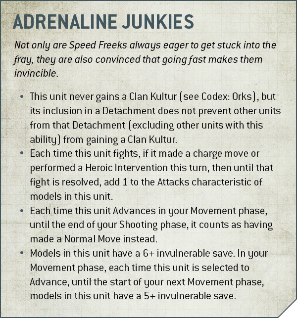 not planes or Battlewagons, which keep their normal rules) lose their Clan Kultur and instead get the Adrenaline Junkies special rule.