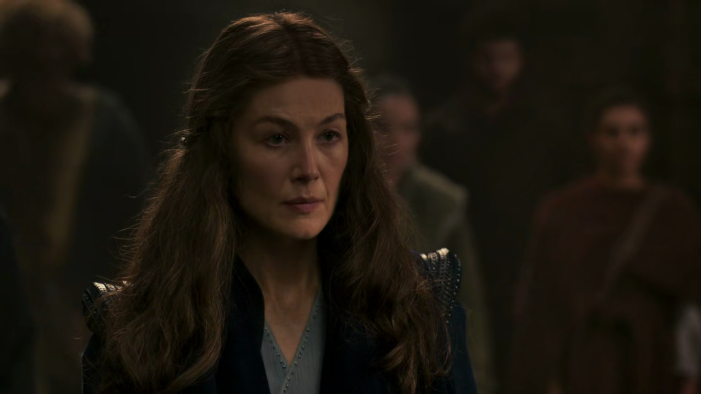 One of the great problems with The Witcher, the other great prestige fantasy streaming show of our time, is that (especially in its second season) it is simply not worth watching when one of the three leads, Geralt, Ciri, or Yen, isn’t on screen. The Wheel of Time has no such issues. There is no single performance that hits such absolute heights as Henry Cavill’s Geralt of Rivia -- though despite my past, uninformed slander of her, Rosamund Pike’s Moiraine Sedai comes very close -- but there is also no situation like the unfortunate Mimî M. Khayisa found herself in with her character Fringilla: given absolutely nothing to do but walk places and nothing to say but political exposition, at length, until the second or third to last scene of the season when she’s finally permitted to let loose. Every character in The Wheel of Time gets their moments, even the slightly-underserved Perrin, and every character uses those moments to keep it moving.