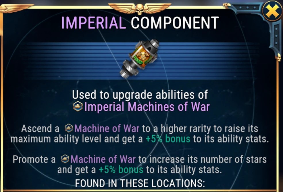 - What it’s used for: Upgrading abilities on your Machines of War.