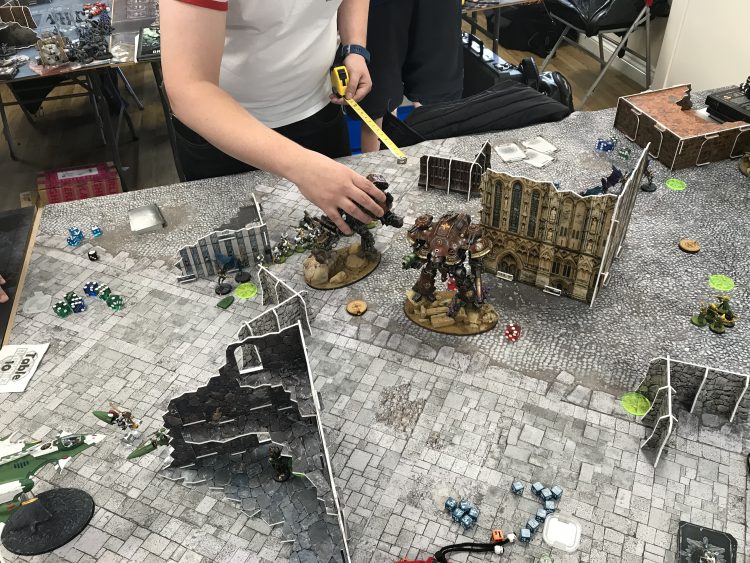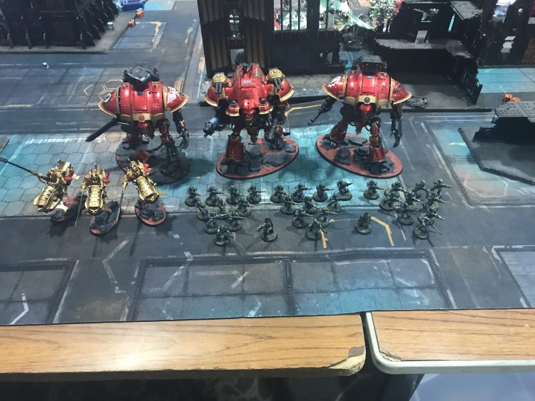 Luckily (?) for me Knights was what Chris had - but not a loyalist Castellan, instead packing Magnus and three large robot friends. We were playing with the 2018 ETC event pack, something that list was especially well suited for, as it tended to score maximum differential kill points. The format also awarded max points for tabling your opponent - something this list was quite capable of doing it.