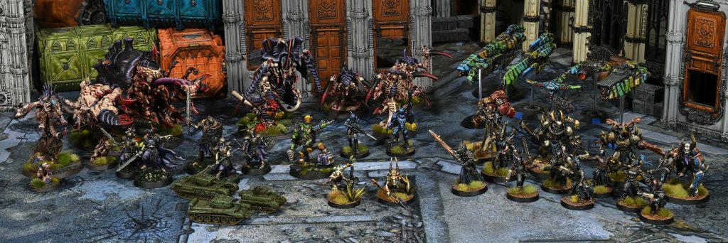 I don’t really have any order of presentation with these, some models are ones like the additions to my dropfleet resistance fleet which are done up in a scheme I am rather enamored with but never really find the time to work on without games in my near future. Others are the opposite, like the hive tyrant that I did specifically because I had an upcoming charity tournament! The biggest model count in this group is the chaos models I did in the