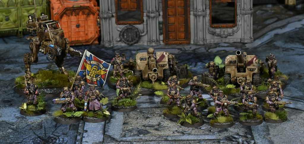 these models have really only just landed and at the time of writing, I am still working through the last squad from the boxset. This isn’t the first time I’ve started guard it’s worth mentioning, and I’m back at it with a minorly modified version of my scheme. I’m not totally sure where I am aiming for size-wise for this round of working on guard, last time I only got a sentinel, a squad of Krieg, and a couple of tanks done. I might commit to filling it out to something usable now that I have the codex but I’m also looking at how I need at least a few more shock troop squads and getting a little leery. While not exactly the most time-consuming scheme, these suckers are