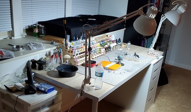 DISCLAIMER: My setup is super swanky right now, and the perfect is the enemy of the good. I live in the blighted Midwest where they give away square footage with happy meals and I paint like 5 models a month -optimistically- so my budget goes into hobby supplies. Never let your setup be a reason to put off putting in the work. The biggest thing is not being a painting nomad, everything else is gravy.