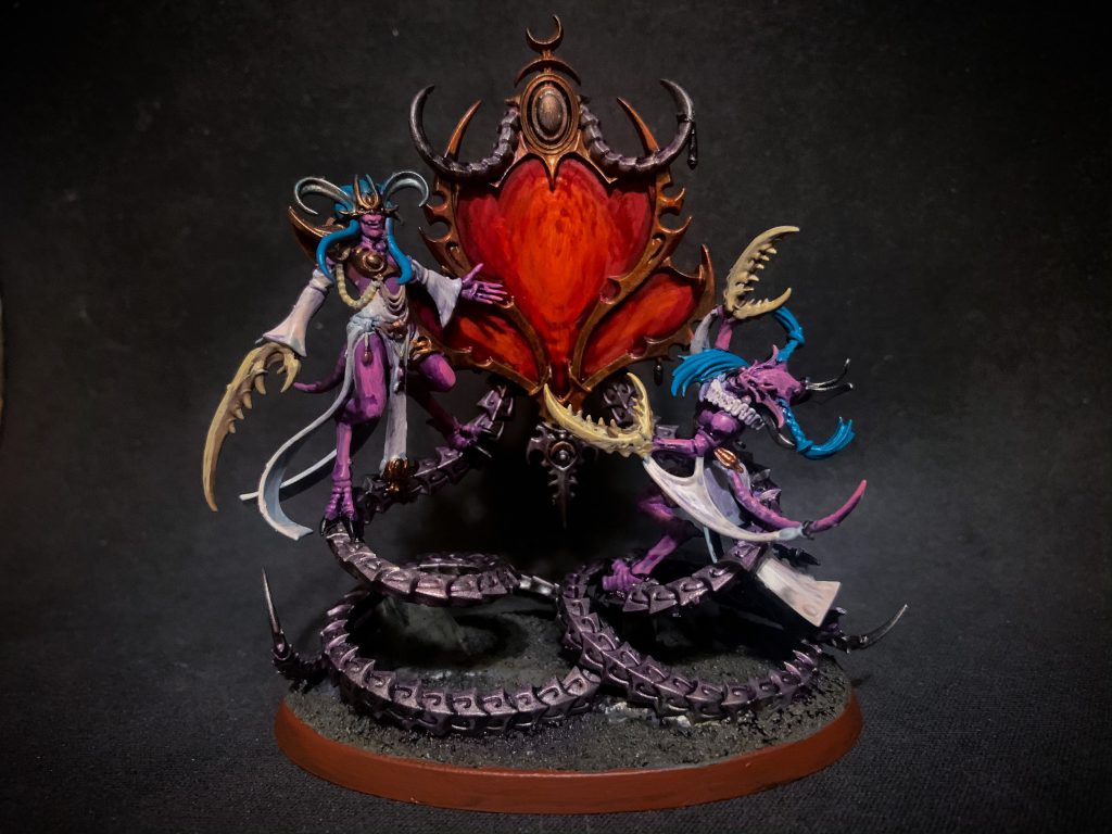 As with the Keeper of Secrets, you’ll want to give Shalaxi a Shining Aegis 100% of the time to maximize their survivability. Shalaxi is a strong addition to a Slaanesh Daemons detachment running multiple Keepers of Secrets as combat threats, and the massive 40-point drop it received in Chapter Approved 2019 pushes it well into the realm of competitive viability.