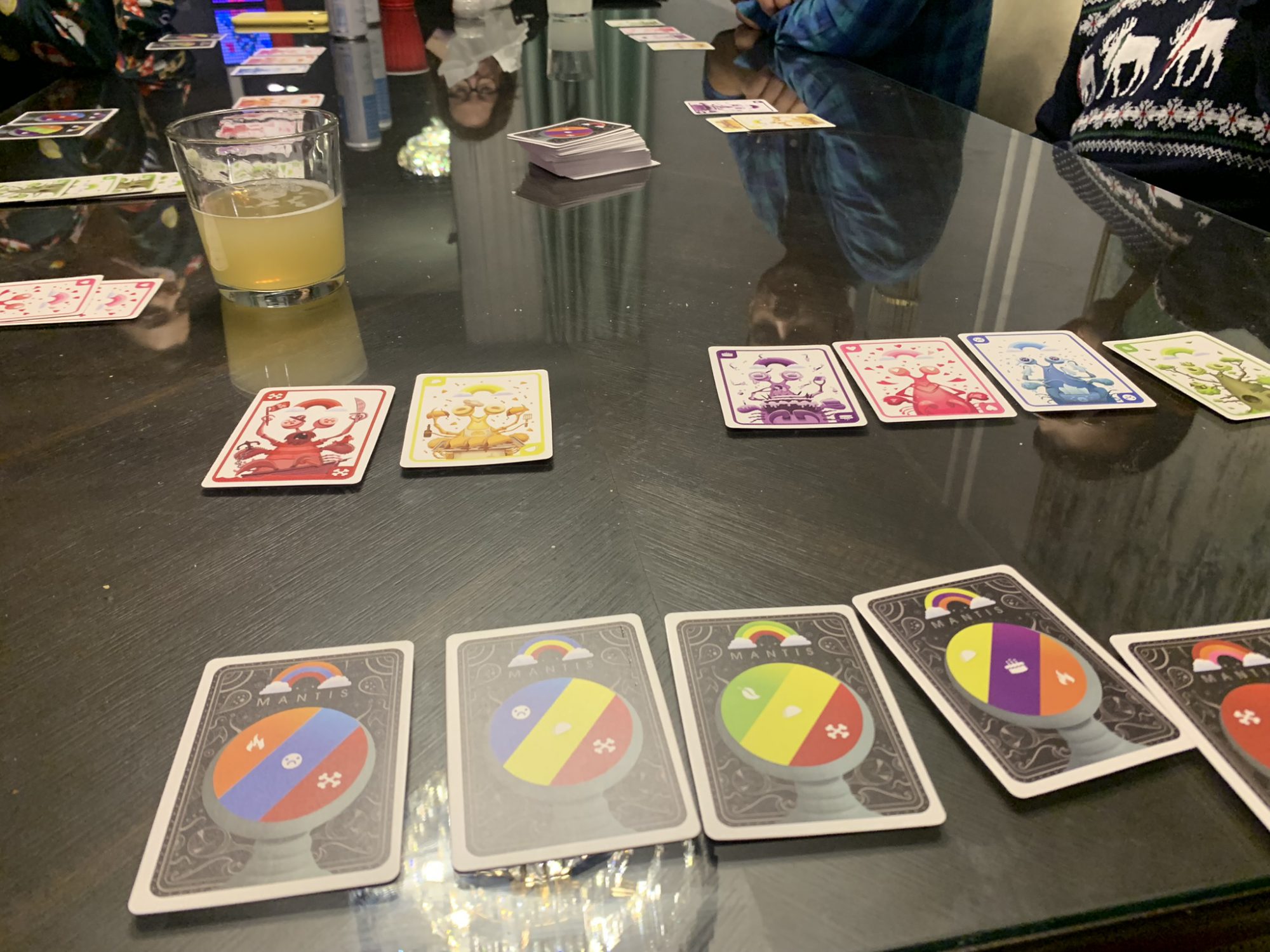 From the creators of Exploding Kittens and the The Oatmeal comes Mantis, a delightful came that manages the impossible: making a "take-that" game feel friendly. For the unfamiliar "take-that" games, like Munchkin, are notorious for being full of feel-bad moments. Your opponents stop you from doing things, take things from you, destroy your board, and all kinds of other things in ways that can be arbitrary. Mantis deftly dodges all of those feel-bads.