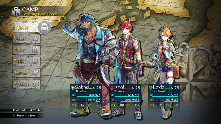 It’s not particularly hard, either! There’s difficulty modes that will certainly make it so, if you’d like, but having played a little bit this gets more into the realm of tedium than enjoyable difficulty. No, the combat is fairly easy in Ys VIII outside of the boss fights and that’s how I like it. This is the core loop of the comfort food JRPG: combat enough to keep things stimulating without being too hard (unless you go looking for optional side-mode danger, which you can in Ys VIII’s night missions), while the rewards from that combat in both experience points and crafting materials feeding into a bunch of different progression systems.