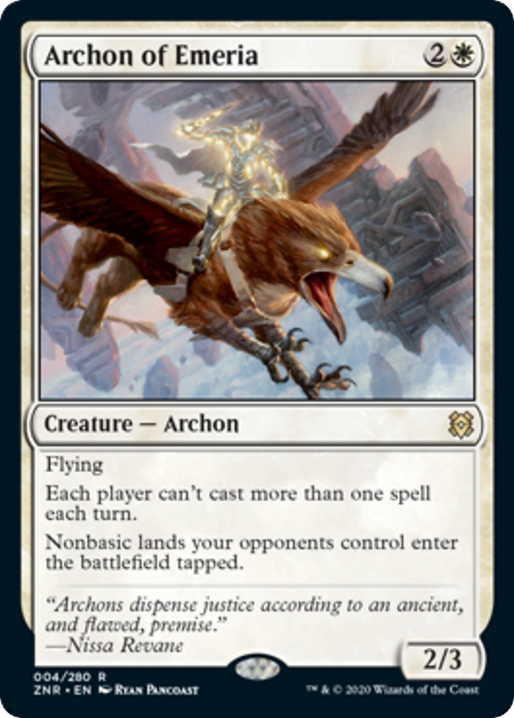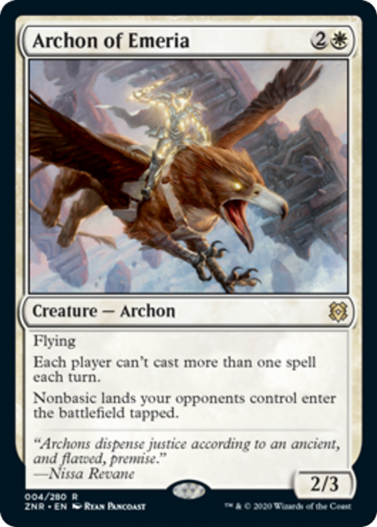 While this card isn’t particularly jaw-dropping, I think this is a moderately useful in some specific archetypes. It’s a 2/3 flying Rule of Law with a bit of Thalia, Heretic Cathar thrown in for good measure. I can see this being a useful sideboard card against spell-based combo decks, or just a generally annoying bit of tech for white-based taxes decks.