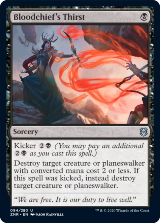 Well, for starters Bloodchief’s Thirst is one mana removal that is already generating mana advantage - you pay one mana and can kill something that costs two. No-brainer. Sure, it’s not instant speed, but the value is already there.